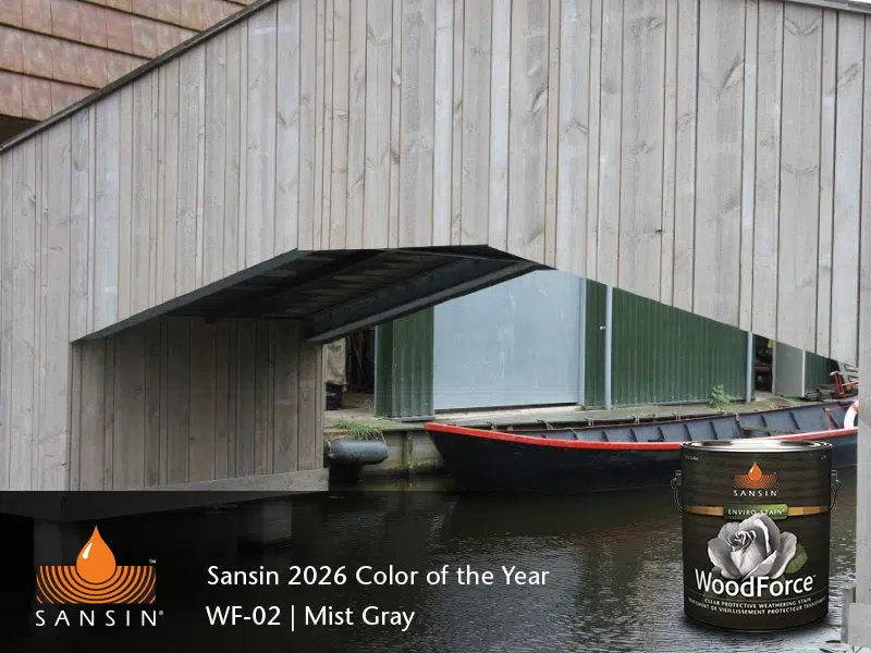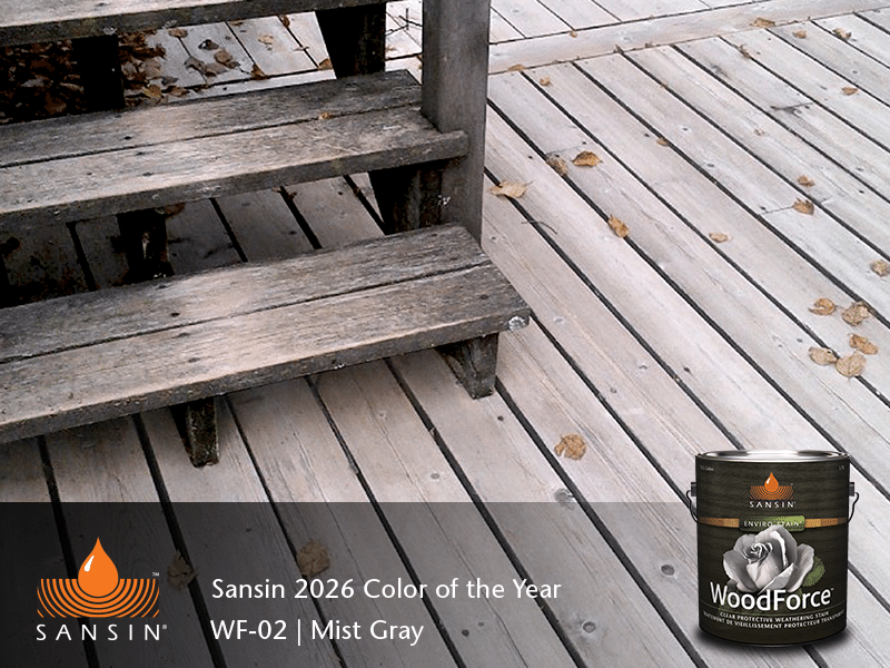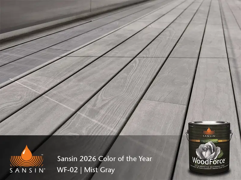 Sansin a le plaisir d’annoncer que WoodForce Mist Gray WF-02 est sa couleur de l’année 2026. WoodForce Mist Gray est une couleur douce et naturelle qui offre une présence apaisante. WoodForce Mist Gray allie une esthétique vintage à un charme intemporel, facilitant la transition vers un aspect bois patiné protégé.